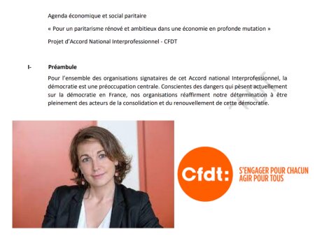 "La dernière version du projet de texte patronal [en date du 11/03/2022] nous convient dans l'ensemble. Elle reprend les items du projet d'accord de la CFDT que nous avons fait parvenir à la délégation patronale. En…