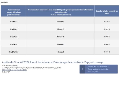 Apprentissage : NPEC (coûts contrats) d’amorçage pour les nouvelles certifications (arrêté au JO)