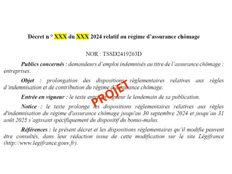 Assurance chômage : prorogation jusqu’au 30/09/2024 des règles actuelles d’indemnisation (projet)