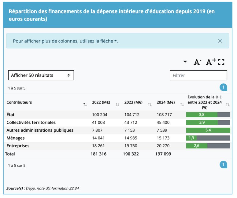« Entre 2023 et 2024, les dépenses d’éducation des collectivités territoriales ont augmenté de 3,9 % (+ 1,7 % en euros constants). »